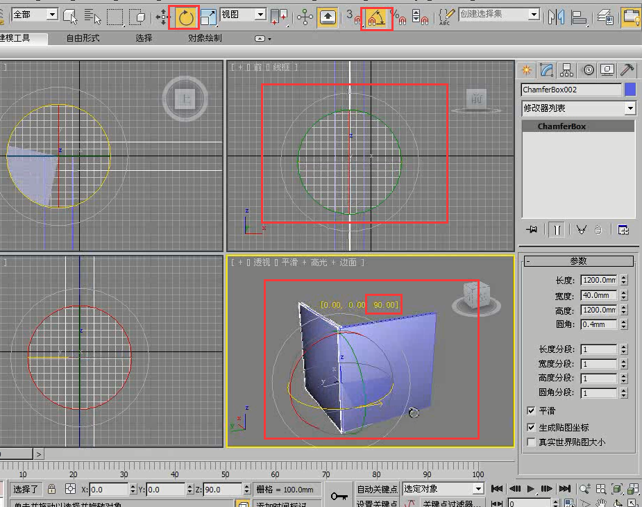 设置完成,打开选择并旋转工具,并单击角度捕捉切换按钮,按住Shift键,旋转90°。